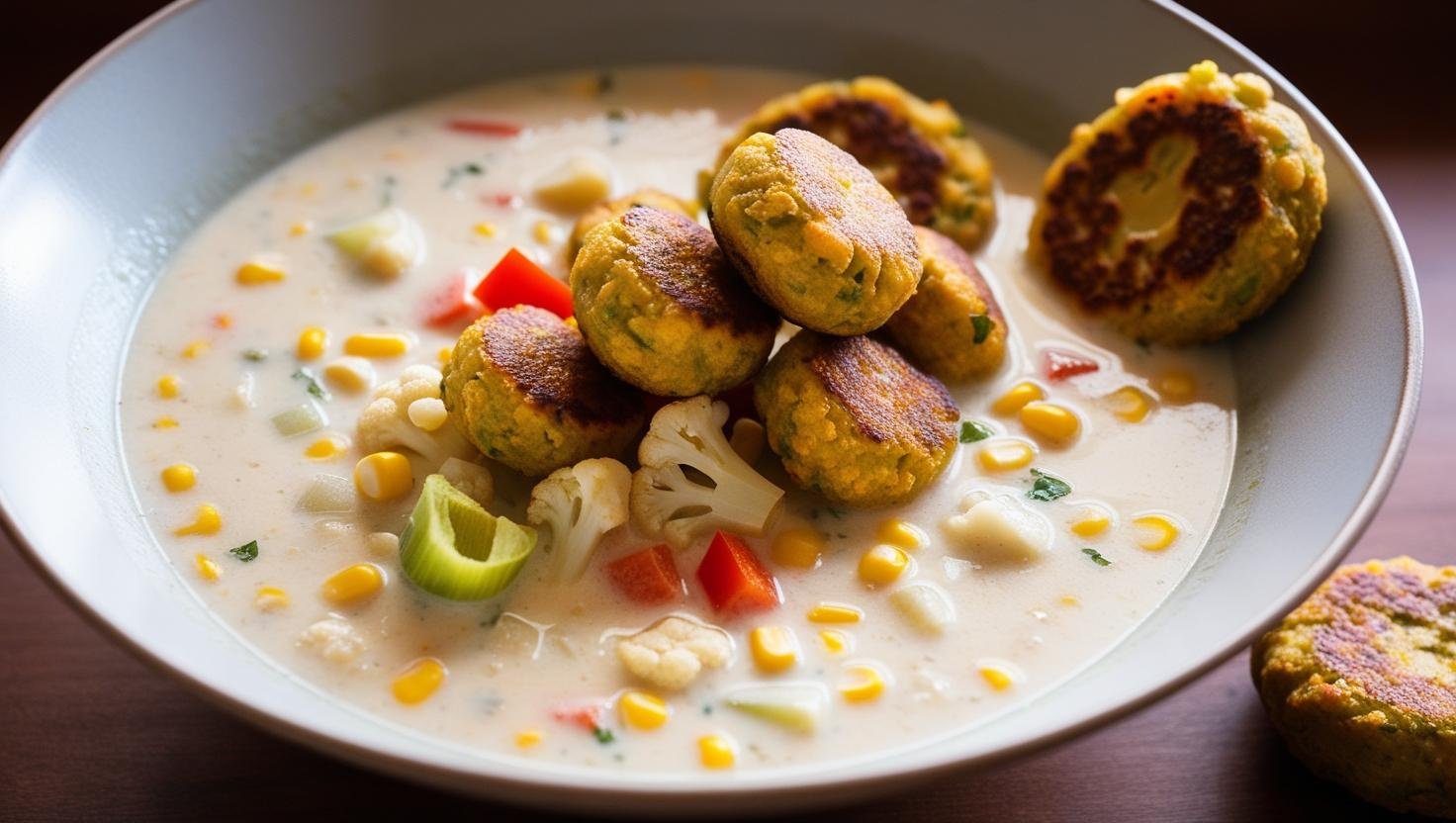 Vegán Gondi – csicseriborsó leves, karfiolos falafel gombóccal